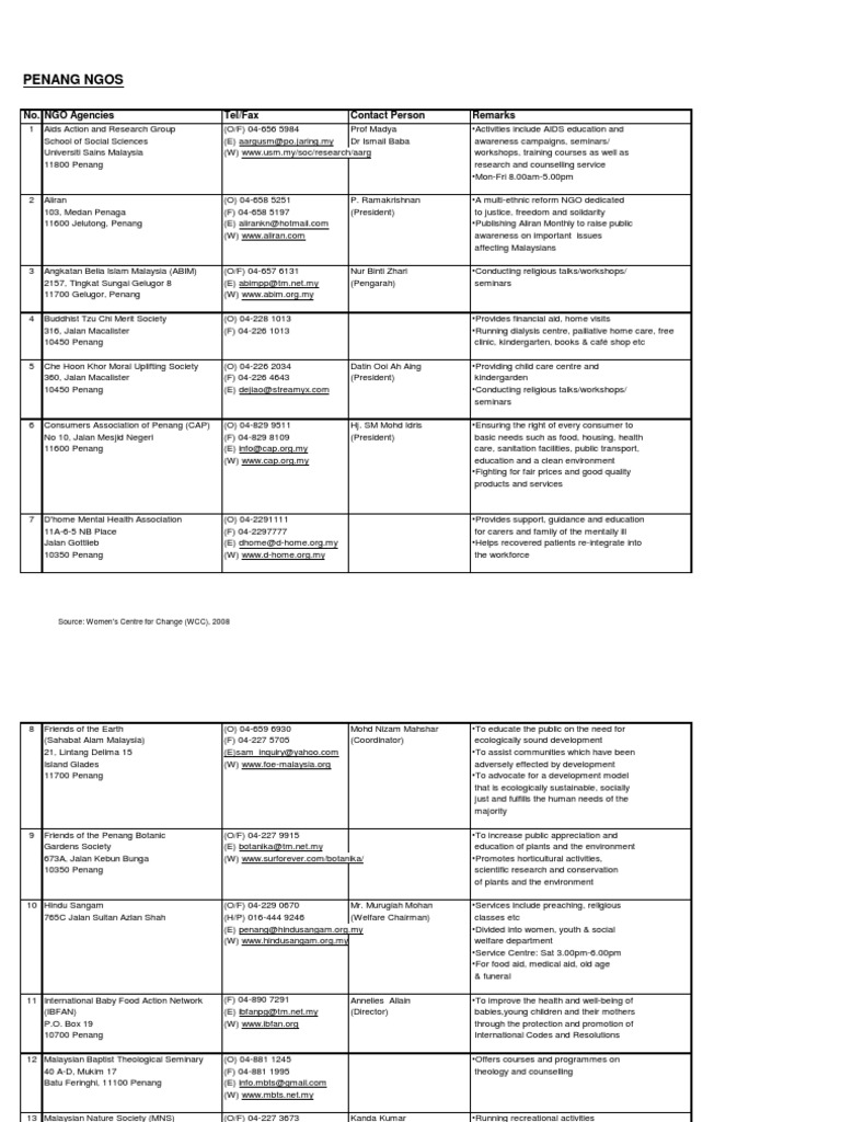 Senarai Ngo D Penang Pdf Non Governmental Organization Malaysia